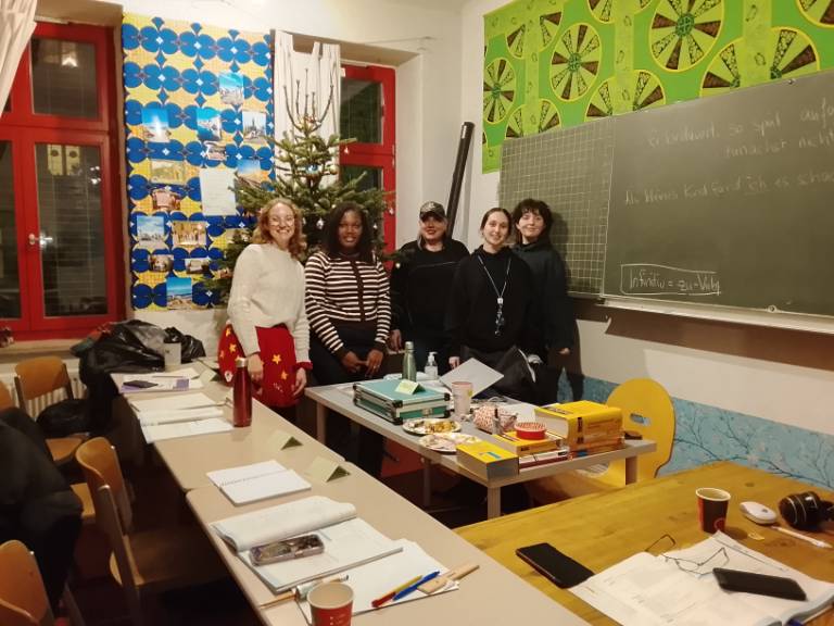 Auch in diesem Jahr ist unser Team bunt, vielfältig und engagiert geblieben – sowohl auf Seiten der Lernenden als auch der Lehrenden. Genau diese Vielfalt macht unseren Kurs zu etwas Besonderem: Der Deutschkurs wird von Menschen mit Flucht- und Migrationserfahrung für Menschen mit Flucht- und Migrationserfahrung organisiert. Gemeinsam setzen wir uns im Herzen von Friedrichshain für eine inklusive Nachbarschaft ein – durch das Erlernen der Sprache und ein solidarisches Miteinander.